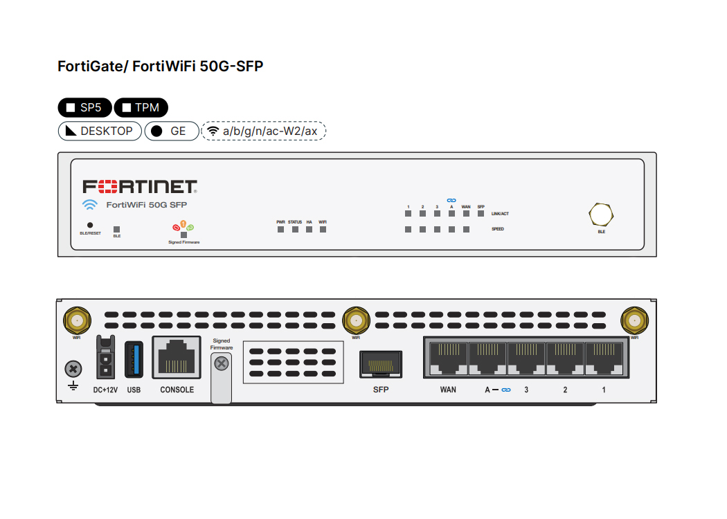 Fortinet FortiGate-50G-SFP Firewall for Branch and Small Offices with 5-Year FortiGuard AI-Powered Unified Threat Protection Services 5x GE RJ45 ports (inc 4xInternal Ports,1xWAN Ports) 1xSFP port