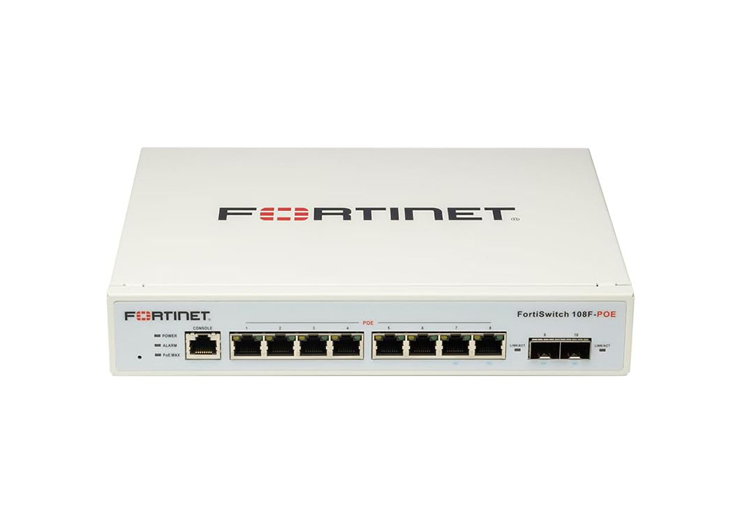 Fortinet FS-108F-POE Fanless L2+management switch with 8xGE + 2xSFP + 1xRJ45 console and automatic limited 65W POENetwork Switch Appliance