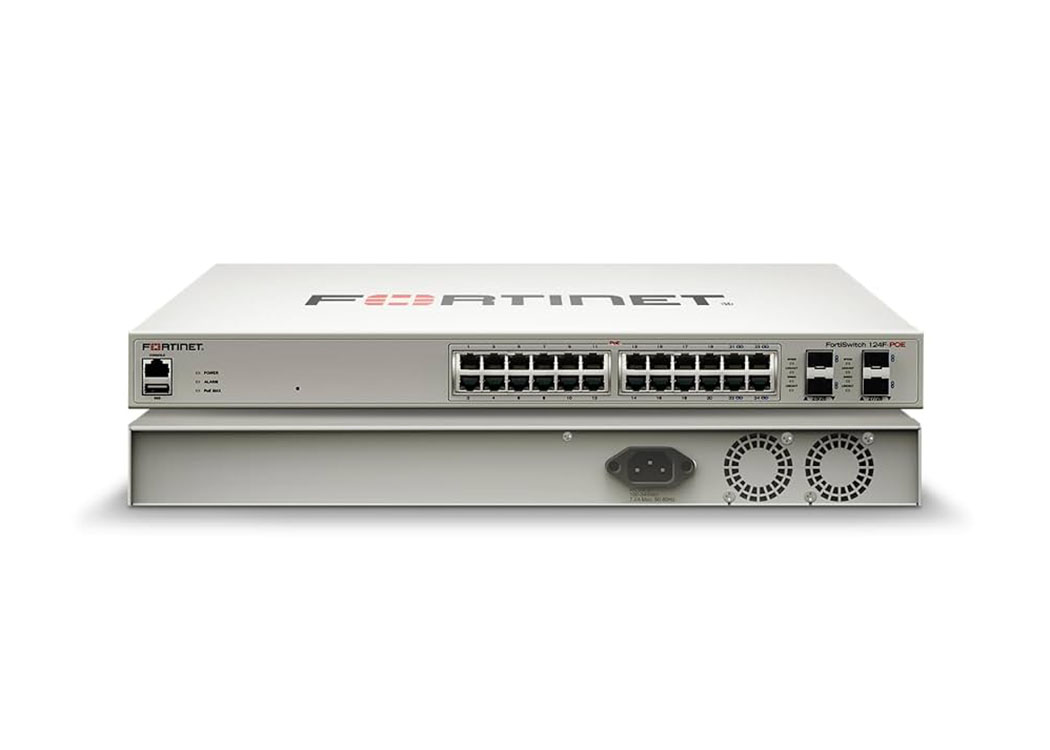 Fortinet FS-124F-POE L2+ managed POE switch with 24GE ports, 12 of which are POE+, 4 SFP+, max 185W limit and smart fan temperature contro
